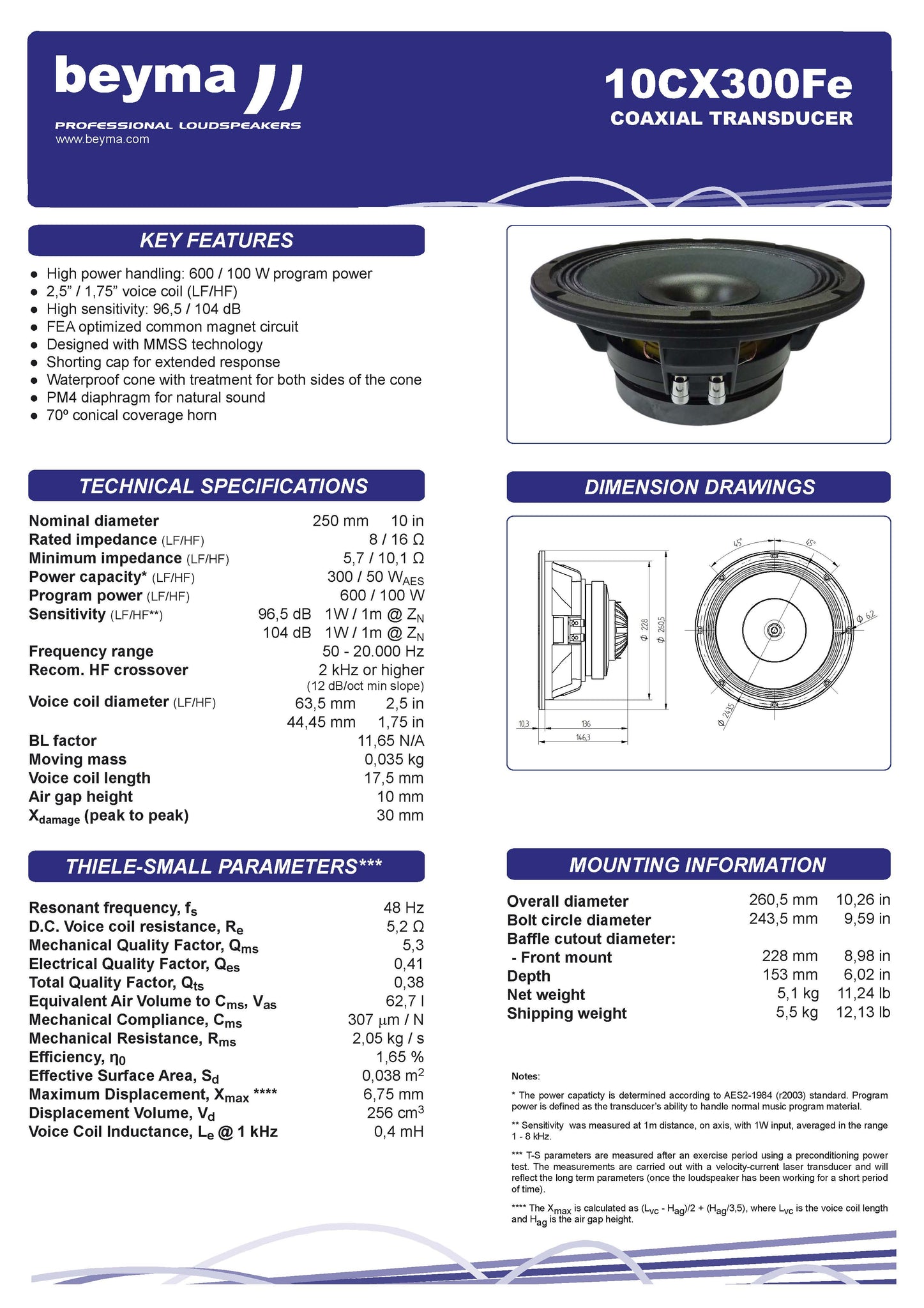 - THE New BEYMA 10CX300Fe COAXIAL SPEAKER INCLUDES A 10" CAST FRAME WOOFER & A 1" EXIT HIGH FREQUENCY COMPRESSION DRIVER