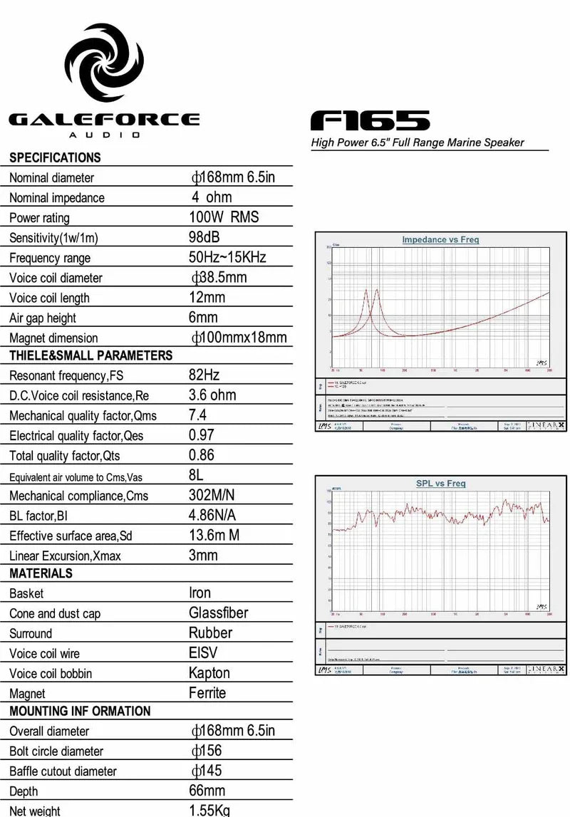 The F1 series is our fully water-proofed face, low power 2-way speaker. The F1 6.5" is the perfect upgrade from factory in any environment that faces the elements. With a glass-fiber cone, waterproof tweeter, and rubber surround, you can rest assured that you can jam out even if its pouring rain!