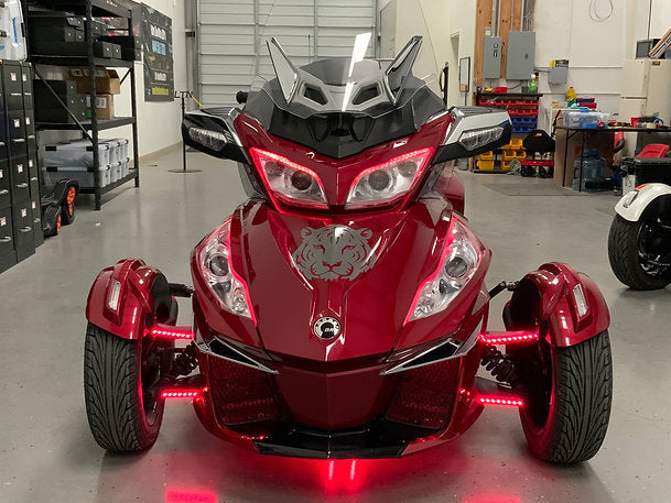 Lite The Nite LEDs (LTN) has done it again, the designers at LTN has designed a dynamic FX chase kit for the CAN AM Spyder RT. Chase kit has single color, multicolor modes, with over 200 preset chase patterns. And that’s not all, shock and amazed spectators as your entire bike flashes, strobes and chases to the beat of your music, all of these dynamic functions are already built into our kits and requires no additional hardware or funding.