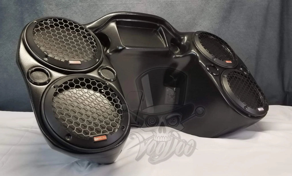 This fairing is second to none.. and I mean NONE!! This inner and outer fairing fits with an interlocking flange so there is never a fitment issue! This is the only fairing in production that fits 4- 8”speakers!! And yes, you heard it right… with 4- 8” speakers and the option of up to 6 bullet tweeters!! With the sound staging setup the way this fairing is we will say it how it is.....CHECKMATE.