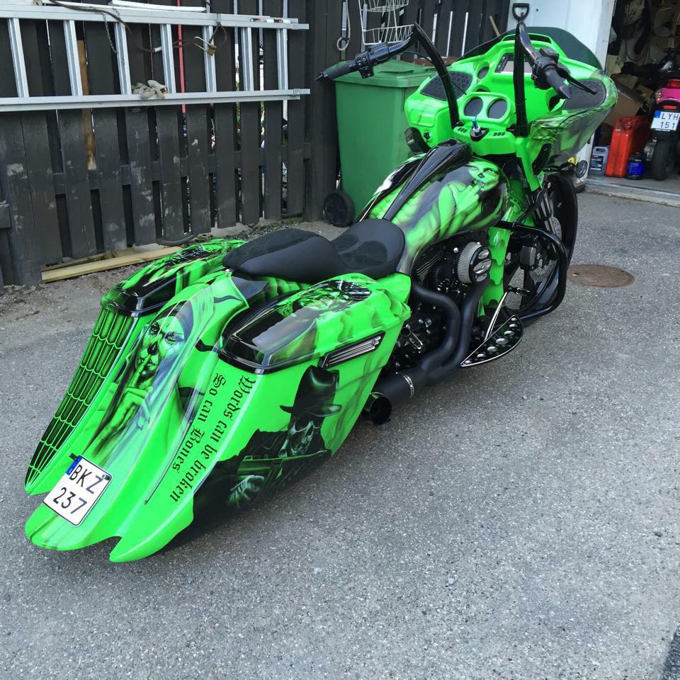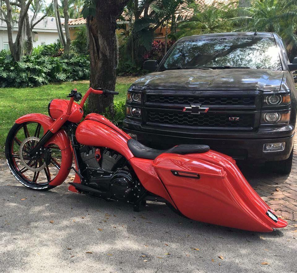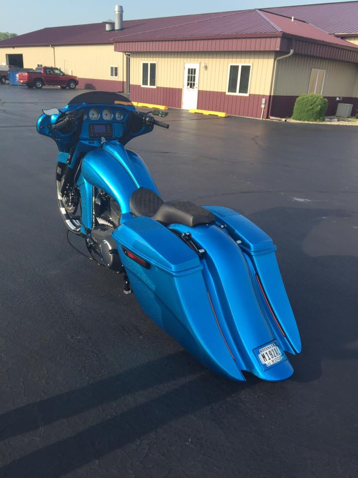7.5″ Stretch, 14″ Sweep kit includes the Bags, Fender, Side Cover, Plate Frame All Bags come primed and carpeted All parts are vacuum infused with a high end resin, oven cured at high temp These bags are made to ride, the floor boards hit the ground before the bags do All parts will need to be sanded smooth before painting, no other prep before painting This kit is recommended for bike that have air ride and also 32-36 inch tire on the front Please allow 2-3 weeks when your order is placed, all of our products are made by hand. This kit will fit on 09-13 bike, the only thing you will have to do is change your lids to the 14 style lids