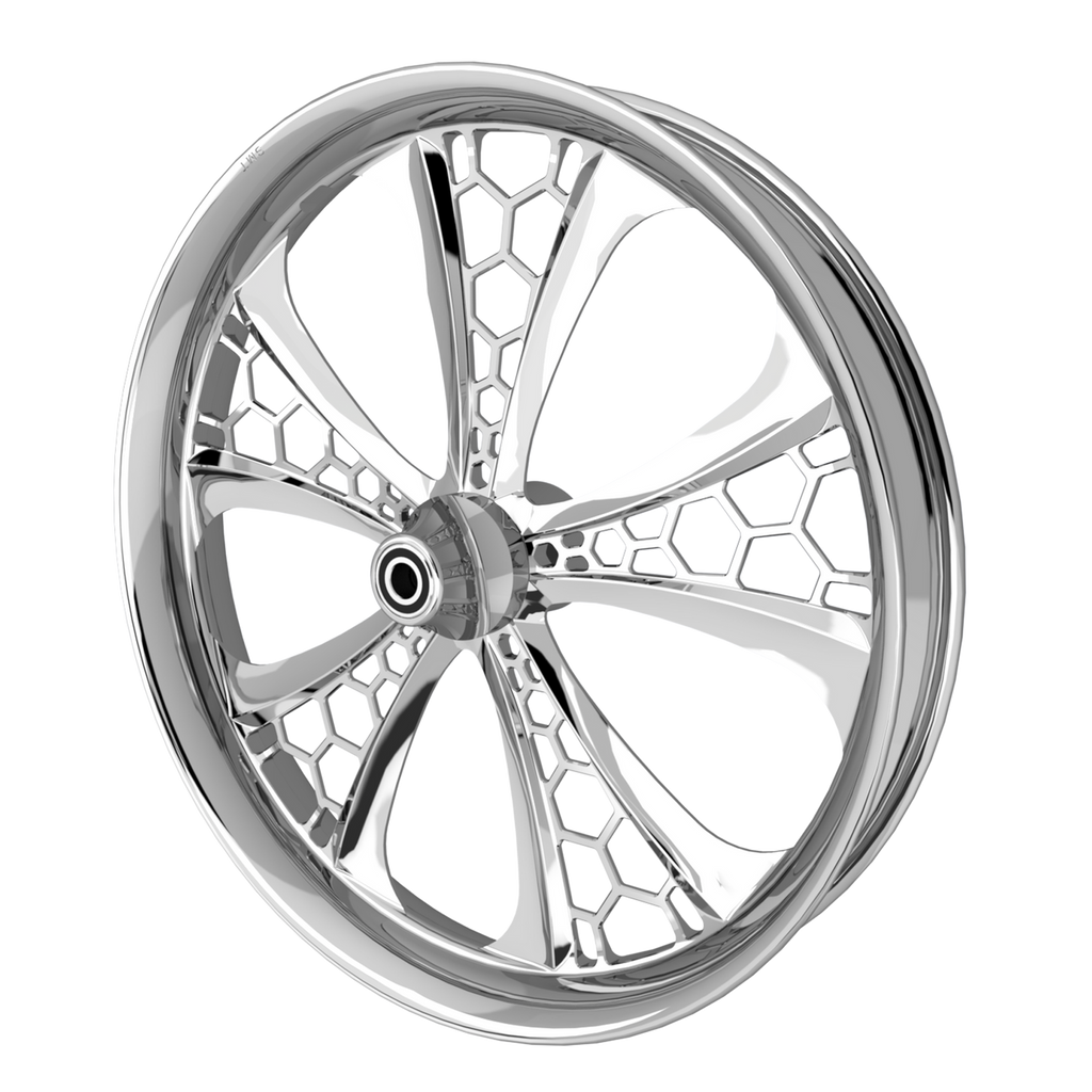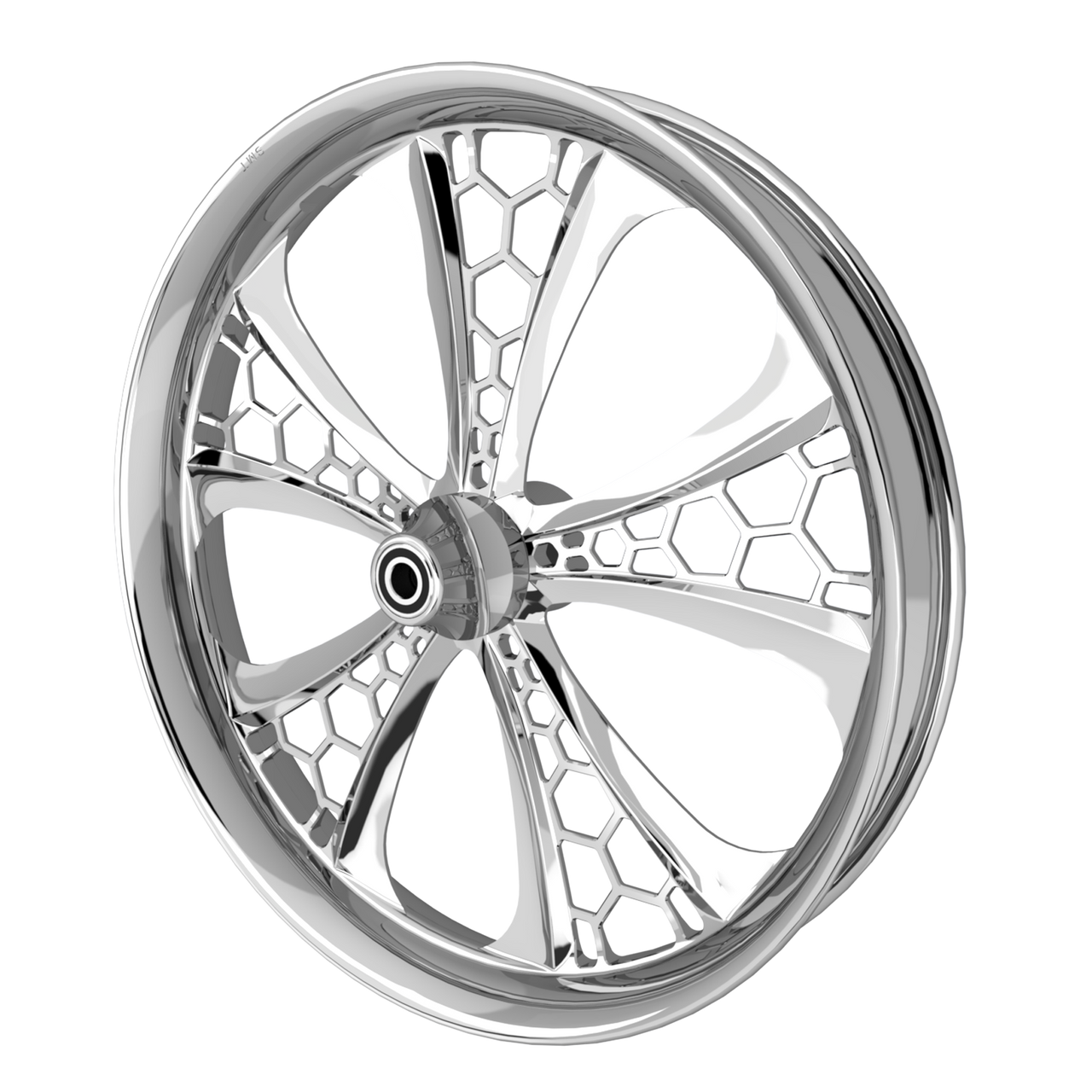 We have 21 inch, 23 inch, 26 inch, 30 inch motorcycle wheels up to 32 inch motorcycle wheels. Also matching rear wheels, pulleys and rotors. SMT wheels and parts are custom to your order.