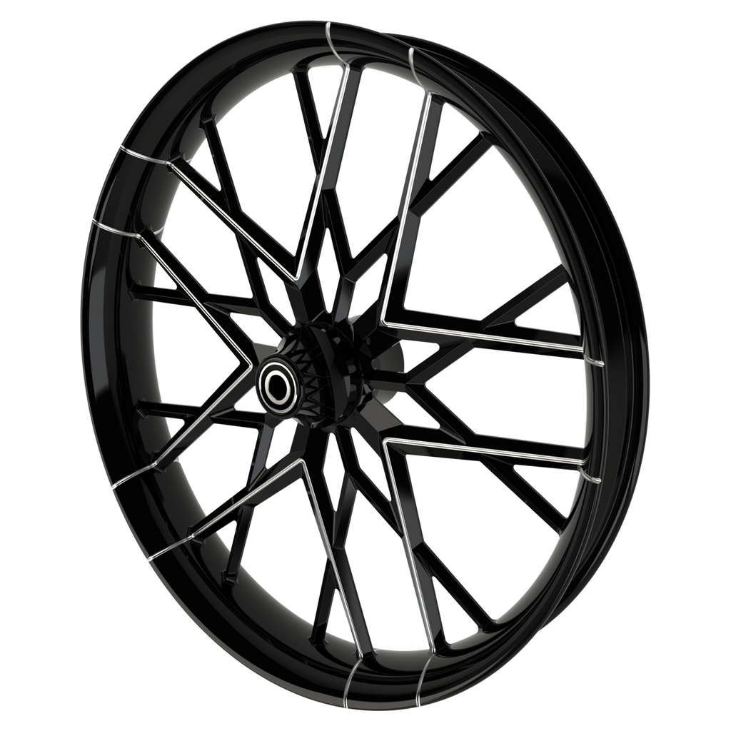 The Bulldog Series wheels are the latest creation of a killer product that is here to take over and change the industry with a true big wheel wide tire. After seeing a major need for more excitement in the industry we took it upon our selves to bring something that we knew had been missing for quite some time. And that is when the 21x5.5 and 23x5.5 were born. With extensive research and development and a partnership with Vee-Rubber tires SMT had created something that they knew would not only stand out from the crowd but would also handle and ride like a dream, or like our customers say "like a Cadillac". Wrapped with a 180mm/50x21 Vee Rubber tire these over sized wide wheels remain slim and sleek with a road hugging low profile tire to show off that mean Bulldog wheel.