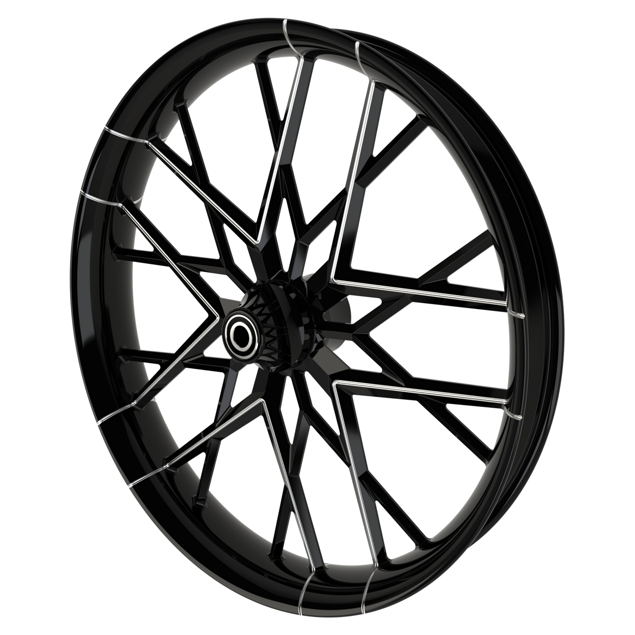 We have 21 inch, 23 inch, 26 inch, 30 inch motorcycle wheels up to 32 inch motorcycle wheels. Also matching rear wheels, pulleys and rotors. SMT wheels and parts are custom to your order.