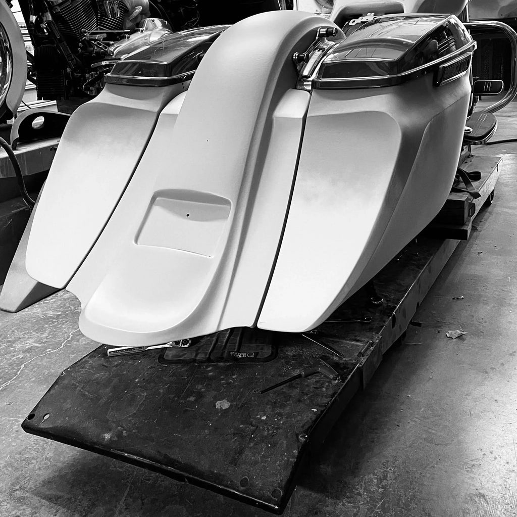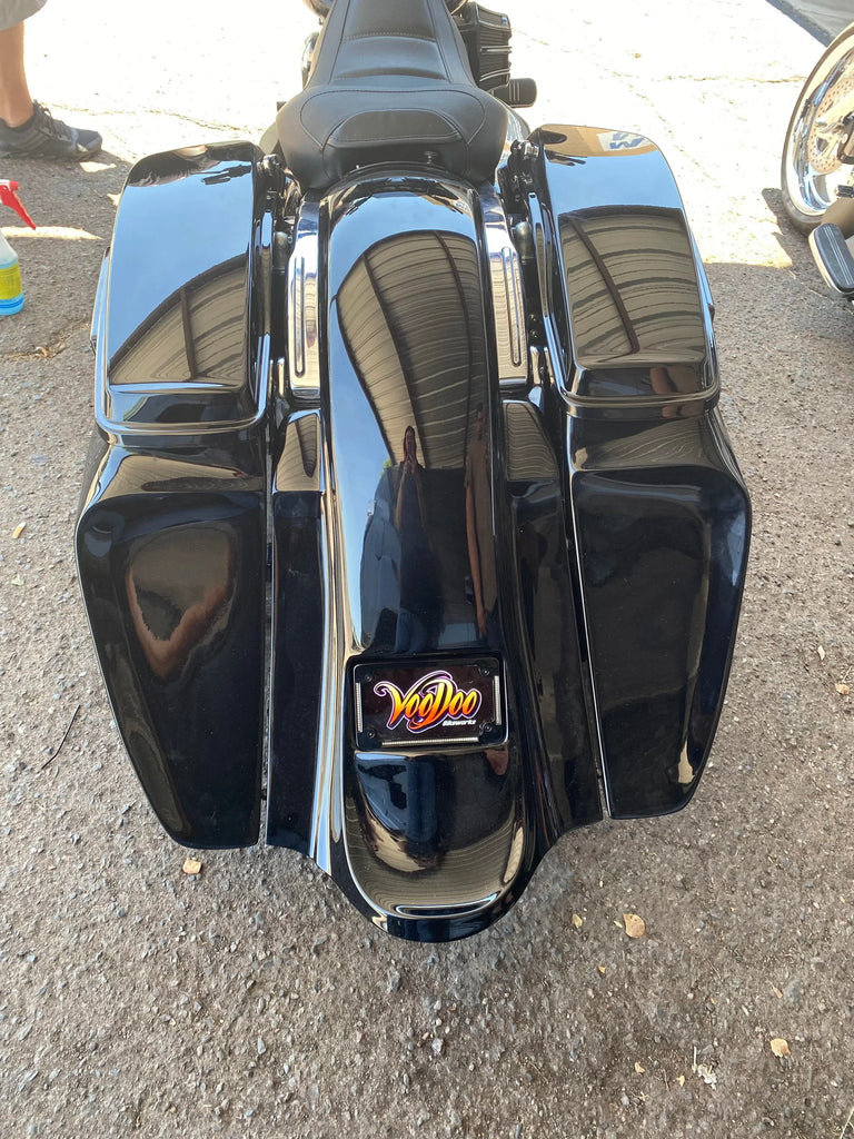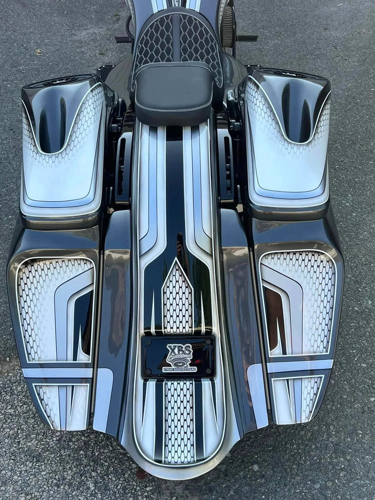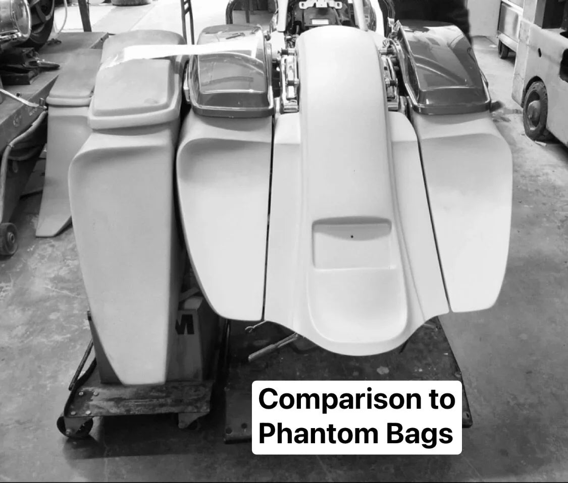 The revamped WRAITH CLASSIC KIT© is here!!! For all you guys that want the look and the sound of the world famous PHANTOM SERIES© but are looking for a smaller version... here you go!! These bags are 5” down and 9” out, off of OEM. A truly rideable audio bag. These compliment from stock wheels up to 26” perfectly!