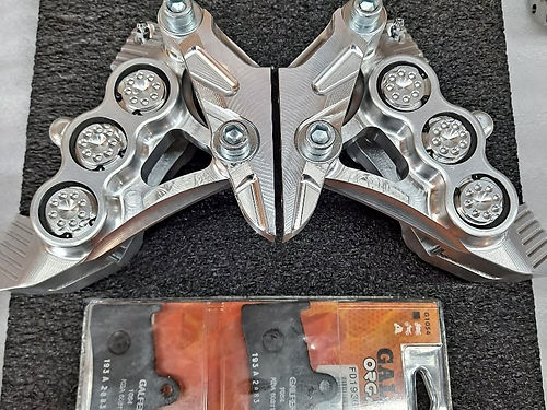 The Stoppie King uses Monoblock construction , means the entire caliper is made from a single block of aircraft aluminum. The Stoppie King uses six 1" diameter pistons. The Stoppie King uses twin bleeders so you can quickly remove every single bubble of air from the system before you trust your life to your brakes.