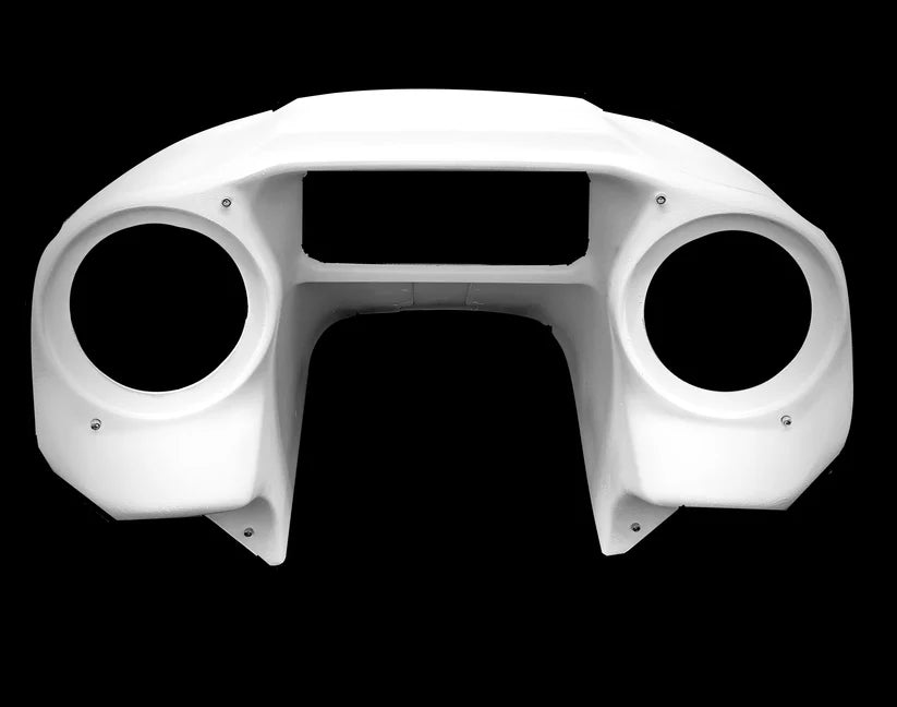 Check out our new RG24 faring!! Tailored to fit 23.5 and newer road glides, this bad boy has a lower tunnel which will allow it to seat 4” lower. Holds dual 8s in the inner, made to work with OEM head unit, headlight and inner bracket, the outter has a raised top to make more room to install amps and such!!
