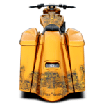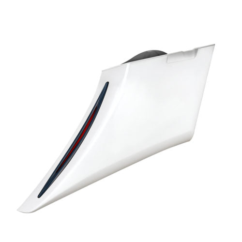 The new 2009 to 2013 Smoothie Rear End will accept your 2014 to current new style one touch bag latches. The Smoothie Rear End is super clean, flat and smooth. These bags are a painters dream… great for graphics. The bags are 14 1/2 inches further back and 6 inches lower than stock bags and have added steerability over 8 inch bags. The bags have narrower tails, with rounder and softer edges. You won’t find a longer, better looking set of bags on the market. The Mack Daddy Rear End consists of bags, fender, urethane license plate bezel with blind hardware, and under fender mount. The license plate bezel has seamless contours so that it sits flush with the rear fender and carries the detail lines through it. Customers have the option to purchase an Inside Strut or Over Strut Fender along with their bags.