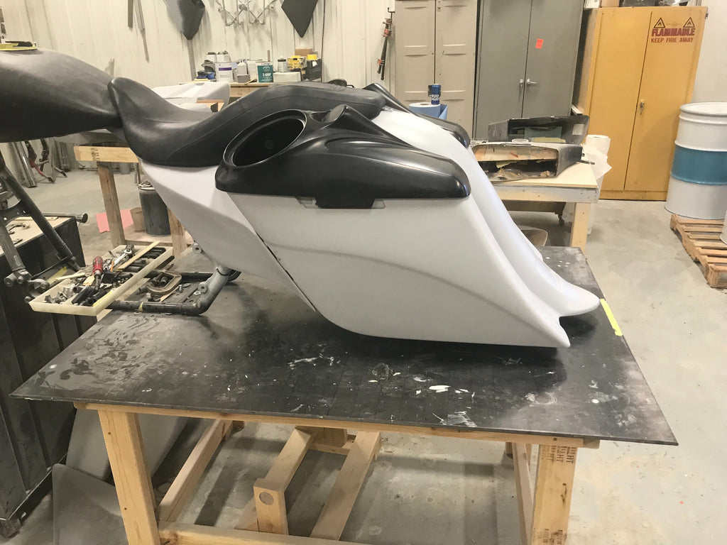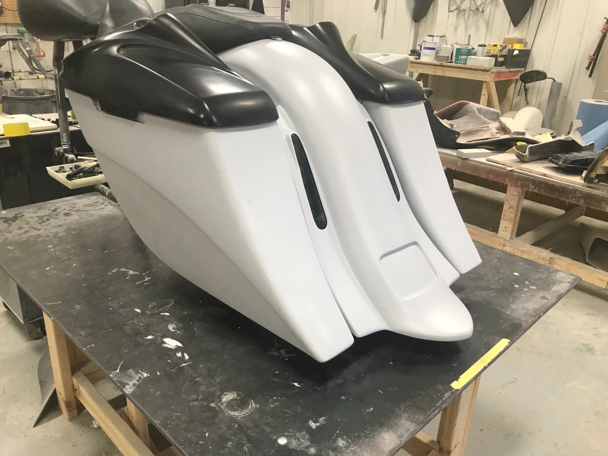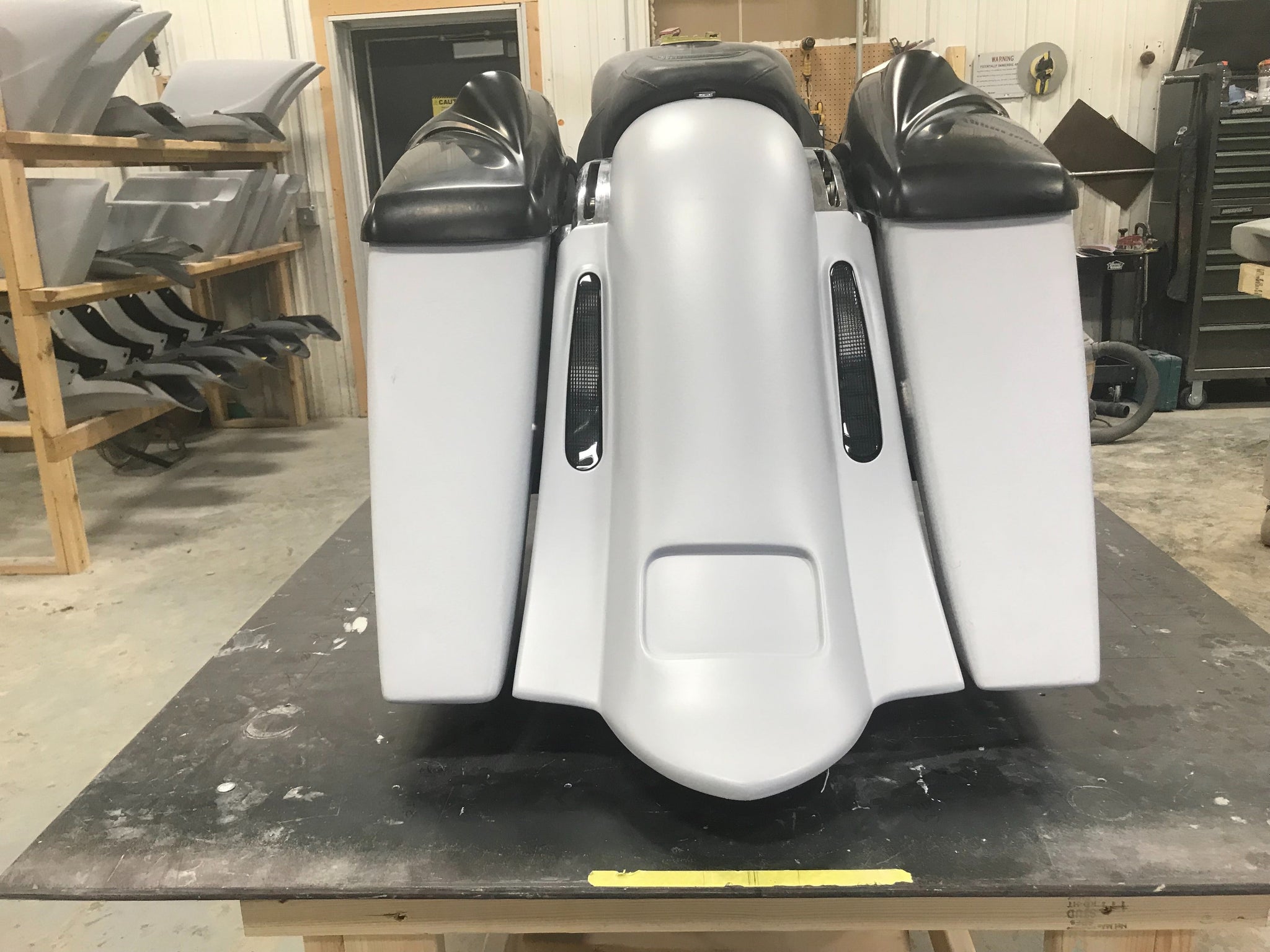 Sweep death 5.5″ longer bags, Sweep is 7’’ longer out the back, bags will come carpeted and primed. Kit includes: Bags, Fender, Gen2 side covers, plate frame, lights w/harness. This kit was made for stock tires up to 26″. All parts are vacuum infused with a high end resin and oven cured for 4 hours All parts will need to be sanded smooth before painting, no other prep before painting. you wouldn’t need Air ride with this kit.